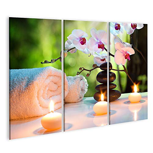 islandburner Tableau sur toile Oasis de bien-être avec bougies et orchidées, massage thaïlandais, images murales, posters