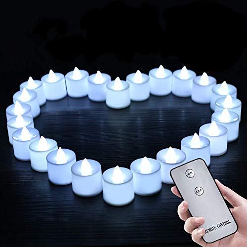 Morbuy Bougies LED, Flamme Vacillante 24PC Lumière Piles Alimentation Proposition de Mariage Romantique Anniversaire Décoration de Halloween Maison Mariage Anniversaire Soirée Fête (Blanc)