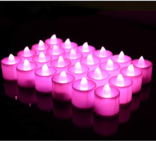 Morbuy Bougies LED, Flamme Vacillante 24PC Lumière Piles Alimentation Proposition de Mariage Romantique Anniversaire Décoration de Halloween Maison Mariage Anniversaire Soirée Fête (Rose)