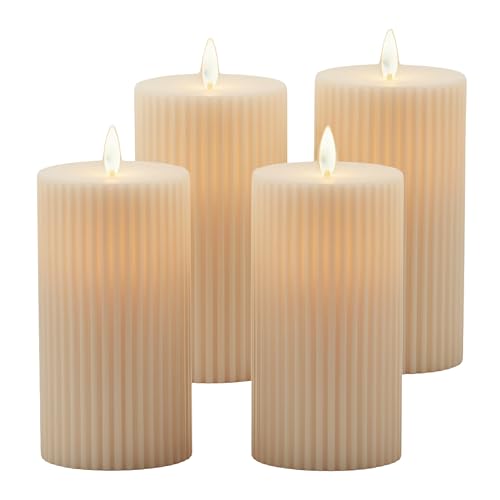 Relaxdays Lot de 4 Bougies LED sans Flamme, Flamme vacillante, rainures, Plastique, Champagne, 17,5x8x8 cm
