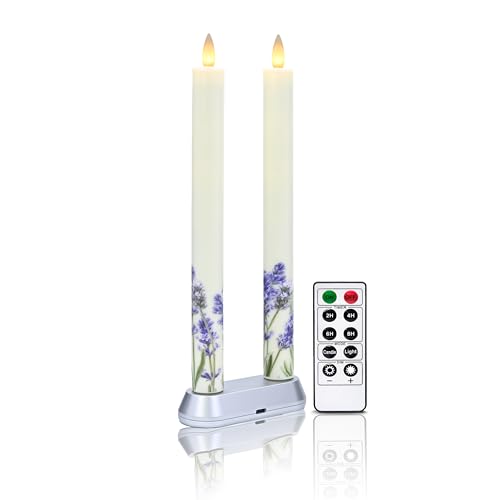 CozierGlow Lot de 2 bougies LED rechargeables sans flamme avec minuterie à distance, flamme mobile 3D en cire véritable (comprend télécommande, base de charge et câble USB) (lilas, 22,9 cm)
