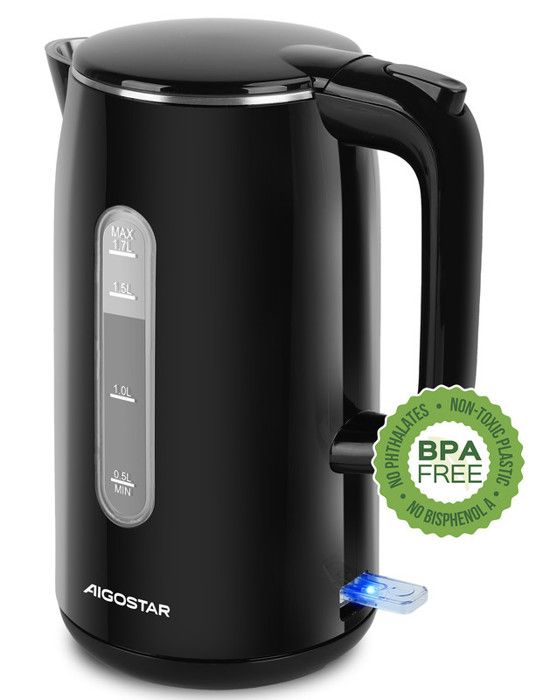 Aigostar Milo- Bouilloire Électrique InoxBouilloir 17 L 2200W avec Filtre AnticalcaireArrêt AutomatiqueSans BPA Noire