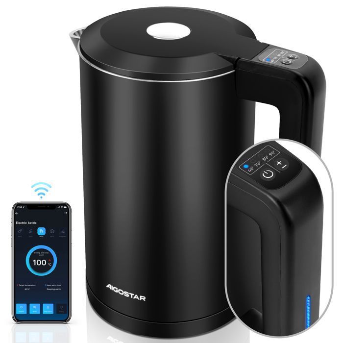 Aigostar Bouilloire Électrique Température Réglable 40° à 100 °Intelligente Contrôle Wi-Fi2200W 1.7L Maintien Chaud Jusquà 24H