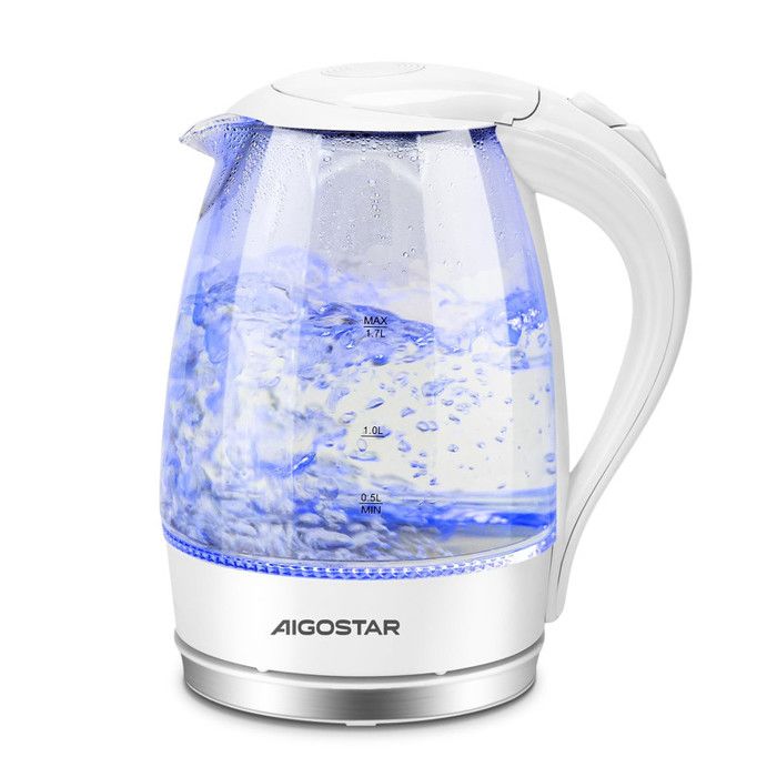 Bouilloire Aigostar Cris avec infuseur à thé amovible en verre borosilicate 17 L 2200W LED couleurs