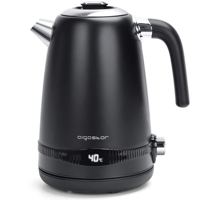 Aigostar Loki - Bouilloire 0% BPA en acier inoxydable. 1.7L 2200W. 7 températures préréglées maintien au chaud écran LED.
