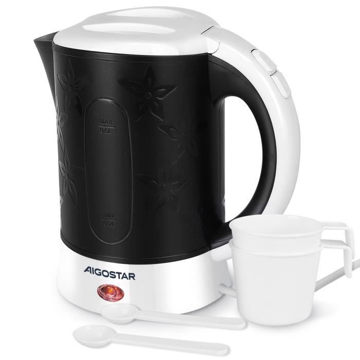 Aigostar Cooltravel - Mini Bouilloire Électrique de voyage 0.6L litres tasses et cuillères incluses