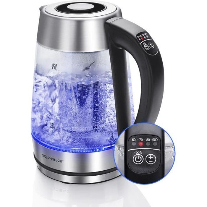 Aigostar-Bouilloire en verre borosilicate avec infuseur à thé, 5 réglages de température, 1,7 L, 2200W, fonction maintien au chaud, éclairage LED
