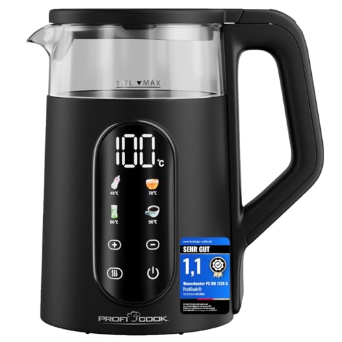 ProfiCook® PC WK 1328 G Bouilloire avec réglage de la température, 40-100 °C, 1,7 l, fonction de démarrage rapide, 2200 W, récipient en verre isolé thermiquement, fonction maintien au chaud