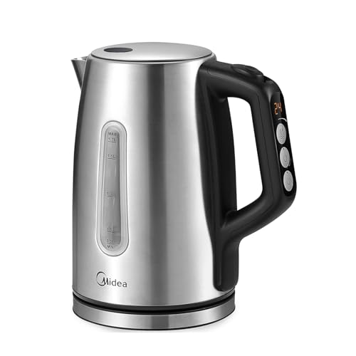 Midea Bouilloire Inox 1,7 litre, 2200 W, avec Fenêtre de Visualisation, Bouilloire Electrique Temperature Reglable (40, 60, 70, 80, 90, 100 ℃), 60-Min Fonction Maintien au Chaud,Noir,MK-17S30B2-E5
