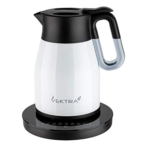 Vektra Series 4 bouilloire électrique isotherme à double paroi en acier inoxydable – 1.7L, blanc, sans-bpa, prise EU, base avec régulation de température