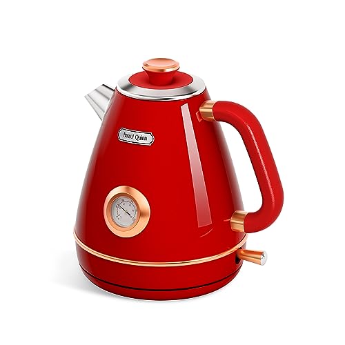 Hazel Quinn Bouilloire Electrique, Bouilloire Vintage Avec Thermomètre, Acier Inoxydable et Sans BPA, Sans Fil et Avec Arrêt Automatique, 1,7 Litres 2200 Watts - Rouge Rubis
