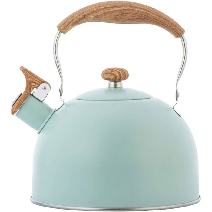 FLORINA Bouilloire Inox (2,3 l) I Bouilloire Sifflante NATURA I Poignée en Bois I Bouilloire non Electrique I Bouilloire Induction, Gaz I Pour Thé et Café I Sifflement Automatique I Couleur: Menthe