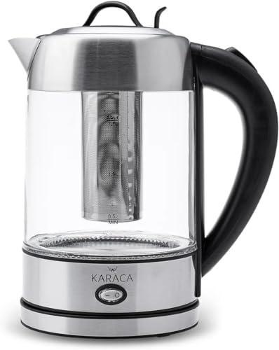 Karaca Machine à Tisane En Verre Avec Bouilloire éclairée à LED Inox 2202 Fonction maintien au chaud, herbes et thé noir, théière, théière, 1,7 Lt, acier inoxydable,10/15 tasses, 1850-2200 W, BPA
