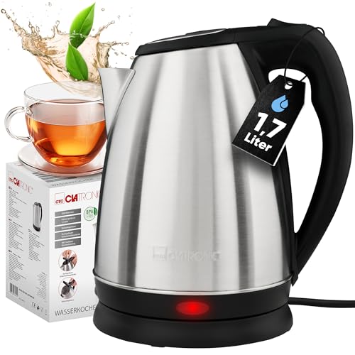 Bouilloire Clatronic | Acier inoxydable | 1,7 litre | Sans BPA | 2200 watts | Bouilloire en acier inoxydable | Enrouleur de câble | Boîtier en acier inoxydable | WKS 3830