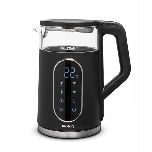 huslog Bouilloire en verre 1,7 l 2200 W avec panneau tactile et écran LED, choix de la température 40-90 °C, Keep Warm 2h, verre borosilicate, Cool Touch, base à 360°, sans BPA, noire