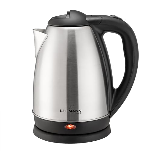 LEHMANN Bouilloire Électrique en Acier Inoxydable, 2200W, 1,8 L, Chauffage Rapide, Base à 360°, Arrêt Automatique, Protection Contre la Surchauffe, Bouilloire sans BPA pour thé et café, Argent