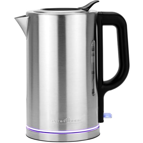 ProfiCook® PC WKS 1321 Bouilloire électrique en acier inoxydable 1,7 l - Éclairage d'ambiance - 2200 W - Utilisation à une main - Sans BPA - Station électrique à 360° avec enrouleur de câble
