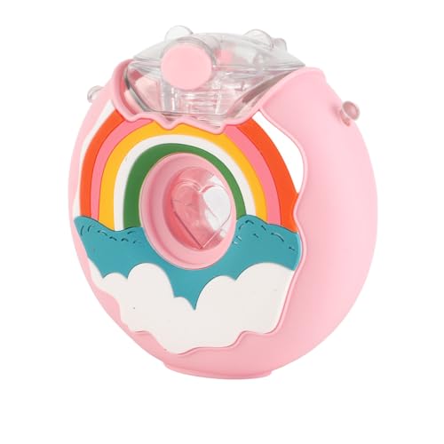 Ycauty Bouteille D'eau Portable en Forme de Beignet de Dessin animé pour Enfants, Bouilloire Créative en Silicone avec Paille Verte, 380ml, pour les Filles (rose)
