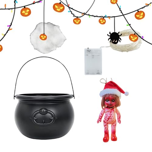 Cauldron d'Halloween avec lumières - Bouilloire noire avec lumières LED | Accessoire effrayant de construction robuste | Lampe chaudière sorcières d'intérieur avec lueur verte | Décoration de table