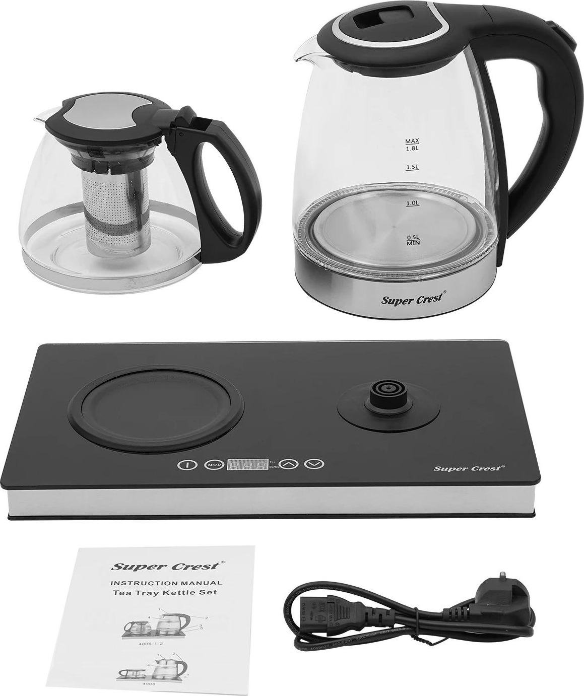 Set de deux bouilloires électriques - Bouilloire électrique - 2 récipients 1,8 l + 1 l - 1800 W - Verre et acier inoxydable - Écran tactile/LCD - Maintien au chaud 70-80 °C - Prise UE 220-240 V