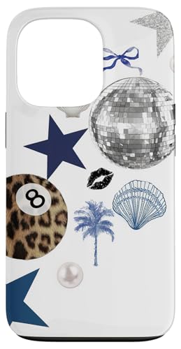 Boule à facettes Summer Sea Shell Y2K Lucky 8, Collage d'étoiles léopard Coque pour iPhone 13 Pro