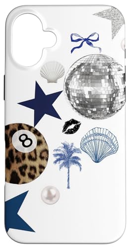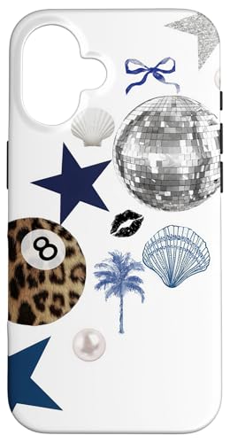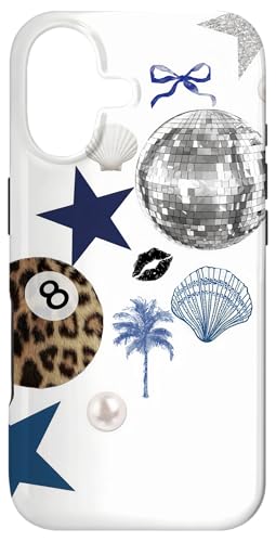 Boule à facettes Summer Sea Shell Y2K Lucky 8, Collage d'étoiles léopard Coque pour iPhone 16 Plus