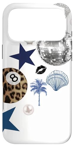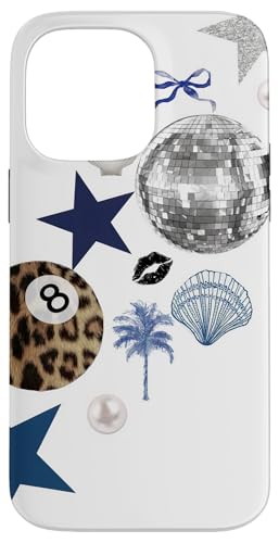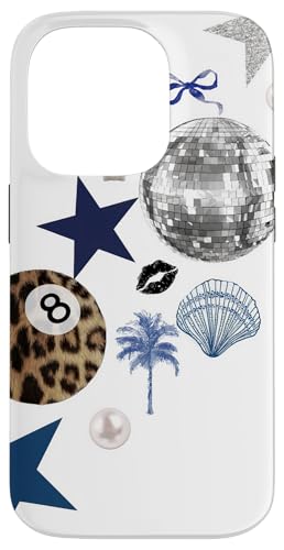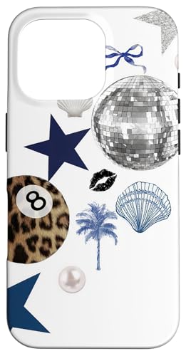 Boule à facettes Summer Sea Shell Y2K Lucky 8, Collage d'étoiles léopard Coque pour iPhone 16 Pro