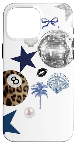 Boule à facettes Summer Sea Shell Y2K Lucky 8, Collage d'étoiles léopard Coque pour iPhone 16 Pro Max