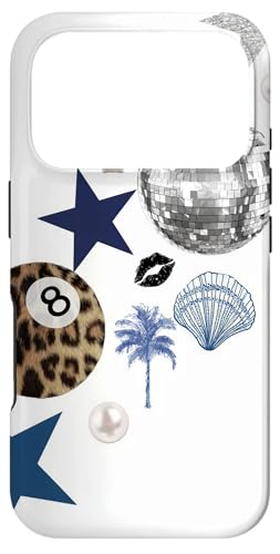 Boule à facettes Summer Sea Shell Y2K Lucky 8, Collage d'étoiles léopard Coque pour iPhone 14 Pro