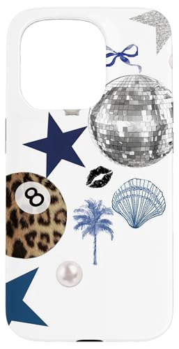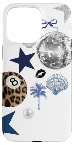Boule à facettes Summer Sea Shell Y2K Lucky 8, Collage d'étoiles léopard Coque pour iPhone 15 Pro