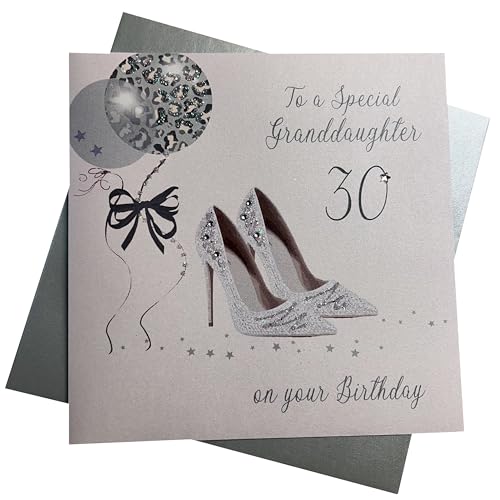 WHITE COTTON CARDS X30GD Grande Boule à facettes 30 & Chaussures de Mariage Inscription to a Special Granddaughter on Your Birthday 30th Carte d'anniversaire Faite à la Main