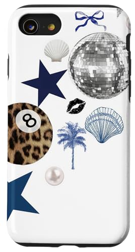 Boule à facettes Summer Sea Shell Y2K Lucky 8, Collage d'étoiles léopard Coque pour iPhone SE (2020) / 7/8