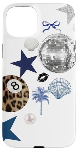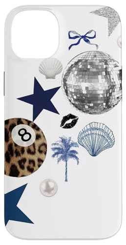 Boule à facettes Summer Sea Shell Y2K Lucky 8, Collage d'étoiles léopard Coque pour iPhone 15 Plus