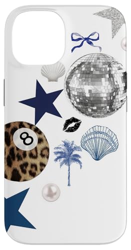 Boule à facettes Summer Sea Shell Y2K Lucky 8, Collage d'étoiles léopard Coque pour iPhone 15