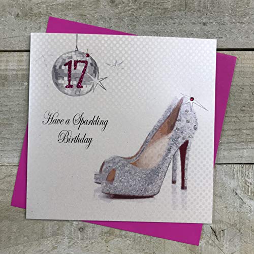 WHITE COTTON CARDS PDA17 Boule à facettes & Chaussures, Un Anniversaire Brillant 17" 17e Carte d'anniversaire Faite à la Main