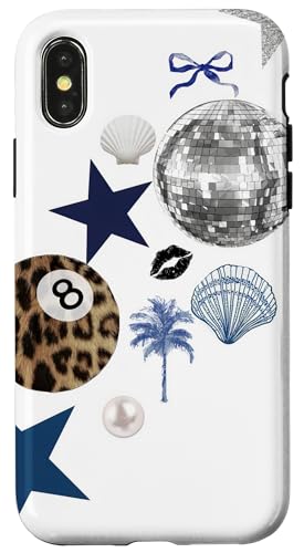 Boule à facettes Summer Sea Shell Y2K Lucky 8, Collage d'étoiles léopard Coque pour iPhone XS Max