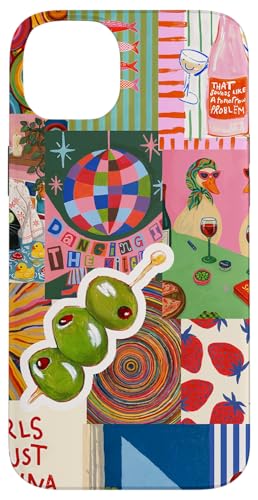 Boule à facettes rétro en Forme d'olive, Collage d'été, Amusante, Les Filles s'amusent Coque pour iPhone 14 Plus