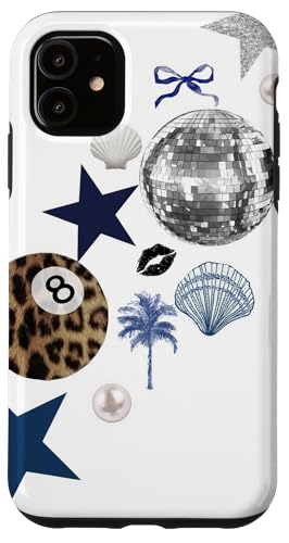 Boule à facettes Summer Sea Shell Y2K Lucky 8, Collage d'étoiles léopard Coque pour iPhone 11