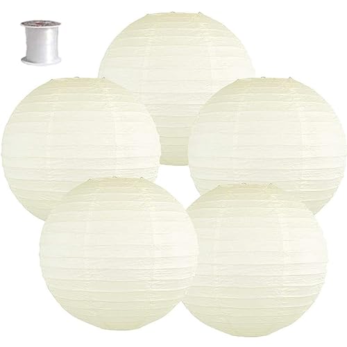 Surwin 5pcs Lanternes Papier Chinois, Lanternes en Papier à Suspendues, Boule Ronde Abat-Jour, Lanterne Decorative pour Intérieurs Extérieurs Mariages Fêtes et Événements (Beige,12 Pouces)