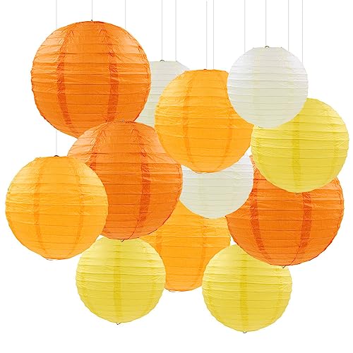 Surwin 12 Pièces Lanternes Papier Chinois, Lanternes en Papier à Suspendues, Boule Ronde Abat-Jour, Lanterne Decorative pour Intérieurs Extérieurs Mariages Anniversaires Fêtes (Orange)