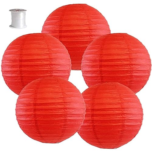 Surwin 5pcs Lanternes Papier Chinois, Lanternes en Papier à Suspendues, Boule Ronde Abat-Jour, Lanterne Decorative pour Intérieurs Extérieurs Mariages Fêtes et Événements (Rouge,12 Pouces)