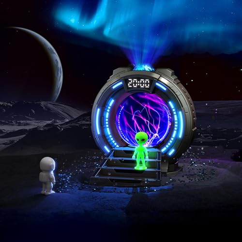 Gemmac Projecteur Bluetooth Galaxy avec Boule Plasma, Réveil LED avec Veilleuse Intégrée Bruit Blanc avec Télécommande, Décoration de Chambre de Science Fiction pour Adultes Cadeau Anniversaire