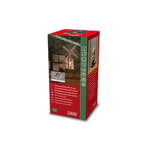 Konstsmide Décoration de Noël LED Boule à Neige Scène de Père Noël et moulin à vent rotatif Rempli d'eau avec minuterie de 5 heures Fonctionne avec piles et USB Intérieur 3 x C 1,5 V (non inclus)