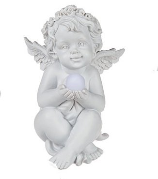 DRW Ange en polyrésine Assis avec Boule LED 6 x 10 x 13 cm