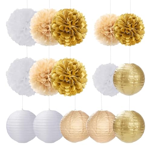 Dryxog 15 Pièces Lanterne Papier Rondes Lanterne Exterieur Boule Lumineuse Jardin Suspension Luminaire pour Mariée Décoration Mariage Fête Anniversaire Fête Jardin (Kaki + Platine)
