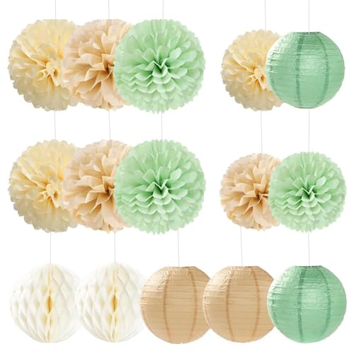Dryxog 15 Pièces Lanterne Papier Rondes Lanterne Exterieur Boule Lumineuse Jardin Suspension Luminaire pour Mariée Décoration Mariage Fête Anniversaire Fête Jardin (Vert Pois + Blanc Cassé)