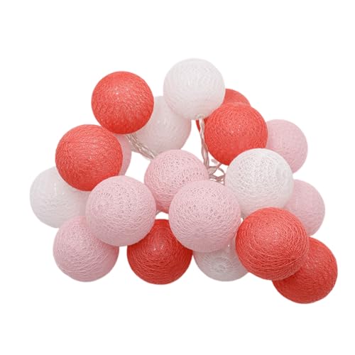 KWODE Guirlande Lumineuse Boule Coton, Interieur Decoration Noël Deco, 3.5M 20er LED Globe Light, Fille, Princesse, Enfant, Bebe, Chambre Mariage Atmosphera Décorations, (USB 6cm Rose/Rouge)