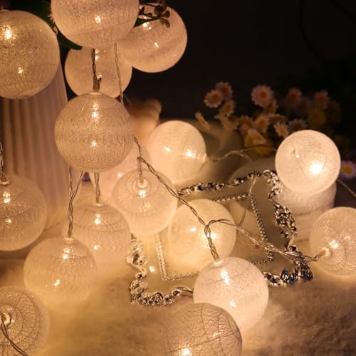 Guirlande Lumineuse Boule Coton Interieur Decoration Noël Deco 3M 20er LED Globe Light Fille Princesse Enfant Bebe Chambre