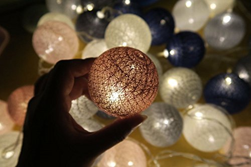 Guirlande Lumineuse Boule Coton, Interieur Decoration Noël Deco, 3.5M 20er LED Globe Light, Fille, Princesse, Enfant, Bebe, Chambre Mariage Atmosphera Décorations, Piles/Batterie (4cm Rose/Gris)