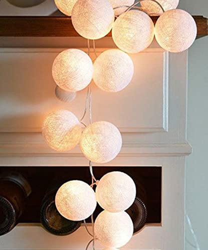 Morbuy Guirlande Lumineuse Boules, Piles Décoration Intérieur 20 LED Coton Boule Chaîne Lumièr pour Fête Noël Halloween Mariage Chambre Romantique Décor